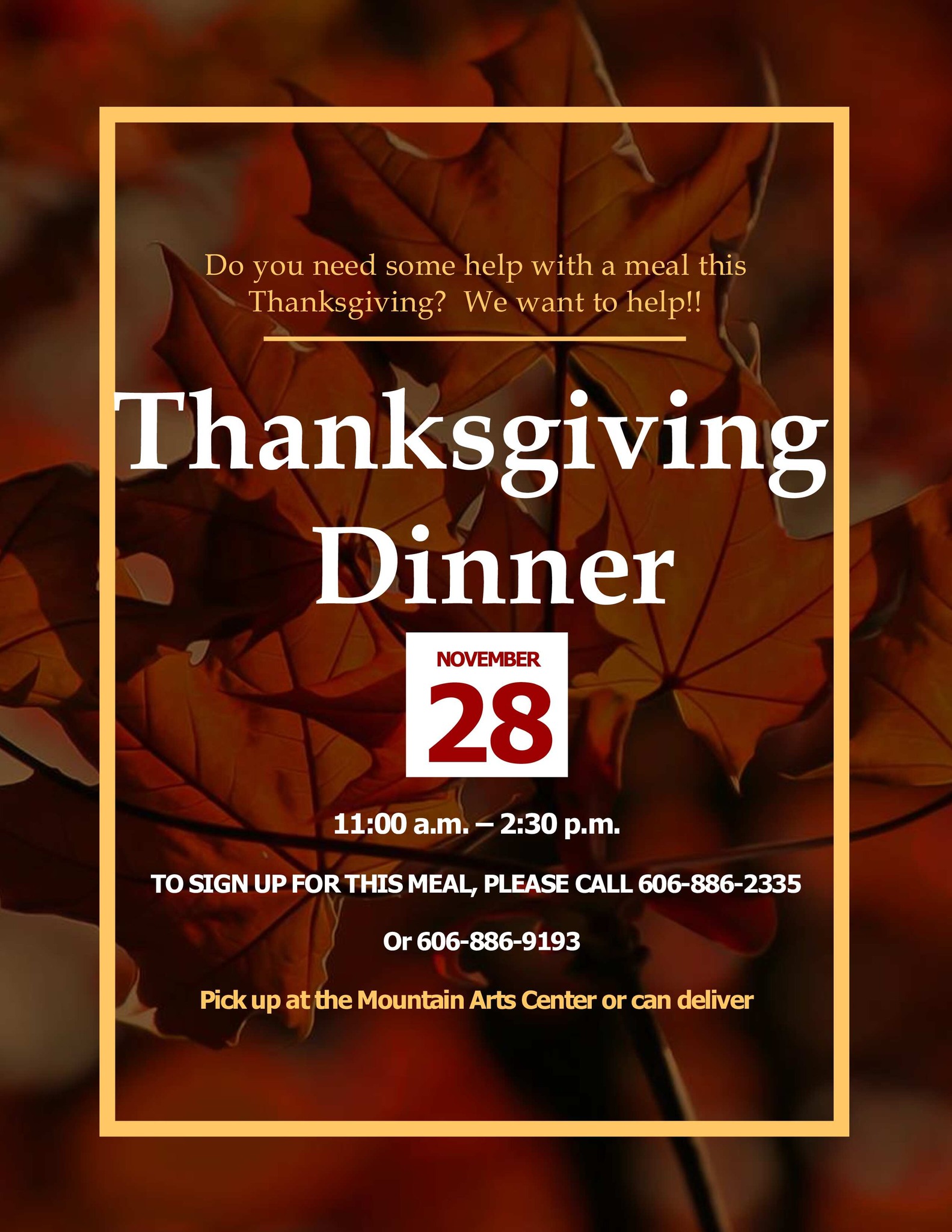 TO SIGN UP FOR THIS MEAL, PLEASE CALL 606-886-2335
