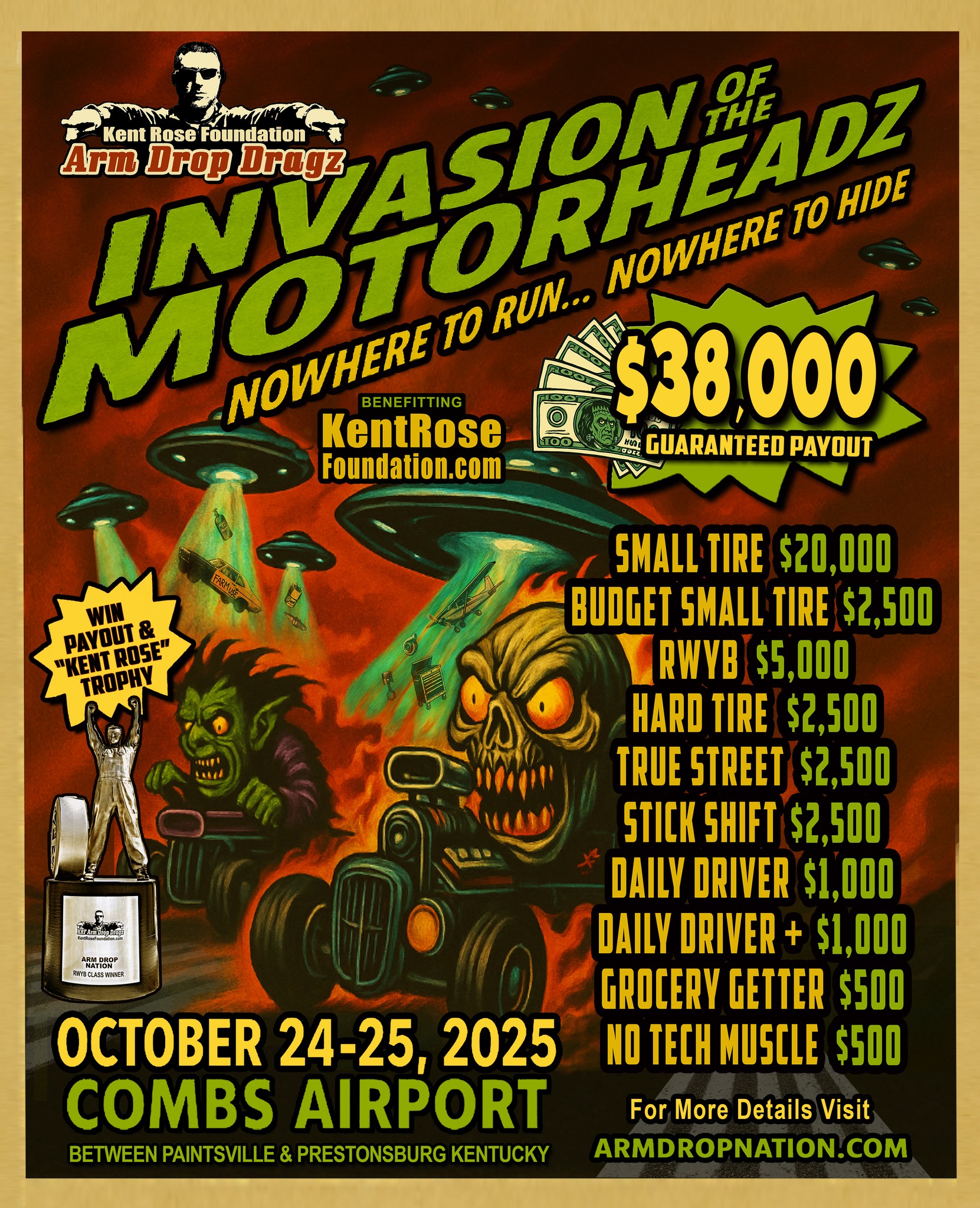 We're back with the IHRA Invasion of the MotorHeadz October 24th & 25th 2025. Be sure to Follow the KRF Arm Drop Dragz page for news and updates! Shake N Bake..! Event Organizer: Kent Rose Foundation Inc. EVENT RACE PROMOTERS/OFFICIALS:HNS "Happy" Escobar, Charlie Bennett, Ryan Mitchell GENERAL SAFETY RULES FOR ALL CLASSESHelmet requiredPants and fire […]
